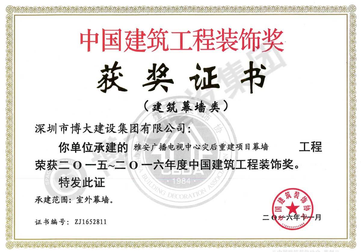 中國建筑工程裝飾獎(雅安廣播電視中心災后重建項目-幕墻)