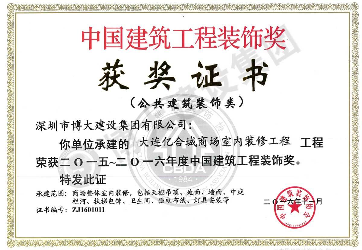 中國建筑工程裝飾獎(大連億合城商場室內裝修工程-裝飾)