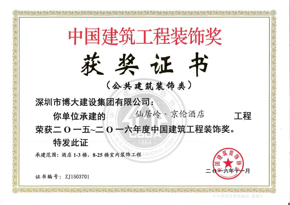 中國建筑工程裝飾獎(仙居嶺.京倫酒店-裝飾)