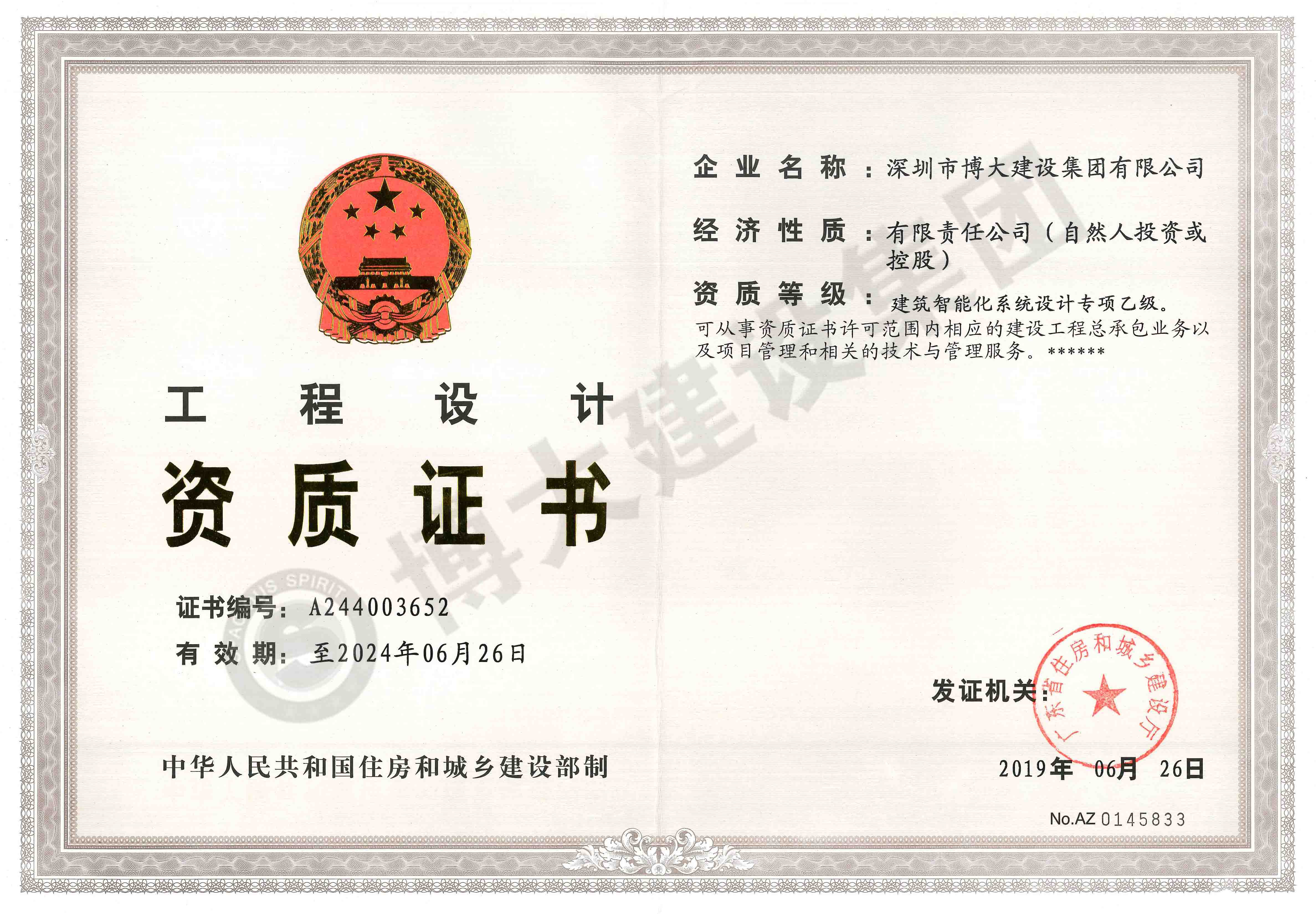 博大資質 | 喜獲建筑智能化系統(tǒng)設計專項乙級