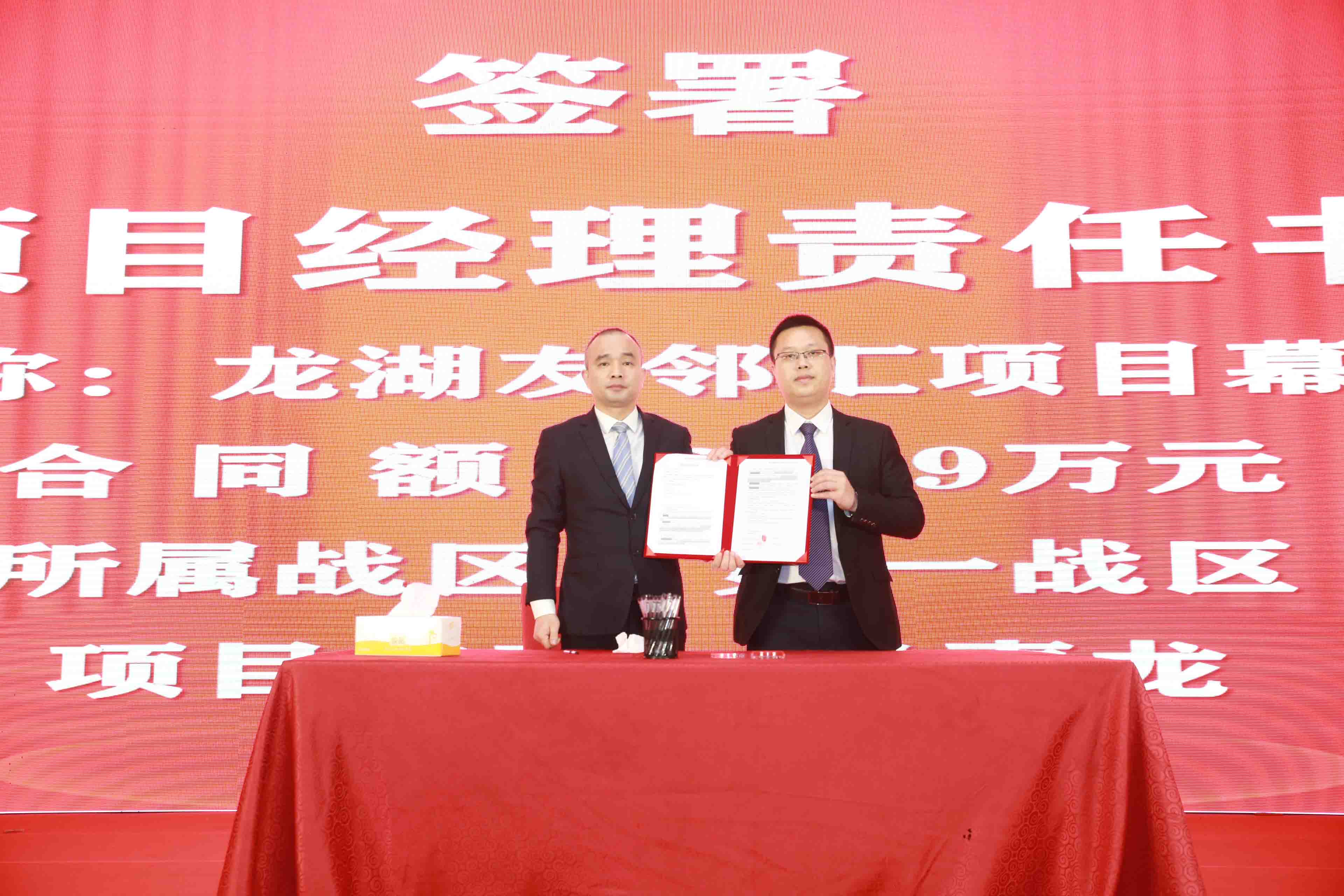 百舸爭流千帆競,莊嚴宣誓奮者先。2021年項目經理簽約儀式、目標宣誓大會現場莊嚴神圣,20位項目負責人作為集團新開工項目代表與工程管理中心總經理何學軍、副總經理徐朝華簽訂《項目經理責任書》,強化履約主體責任。
