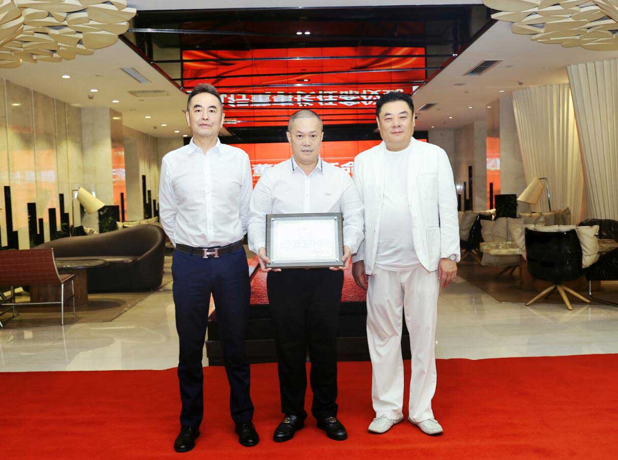 圖 | 創(chuàng)始人徐凱宏、董事長洪宇共同為張炳來先生頒發(fā)集團董事、執(zhí)行董事長任命書