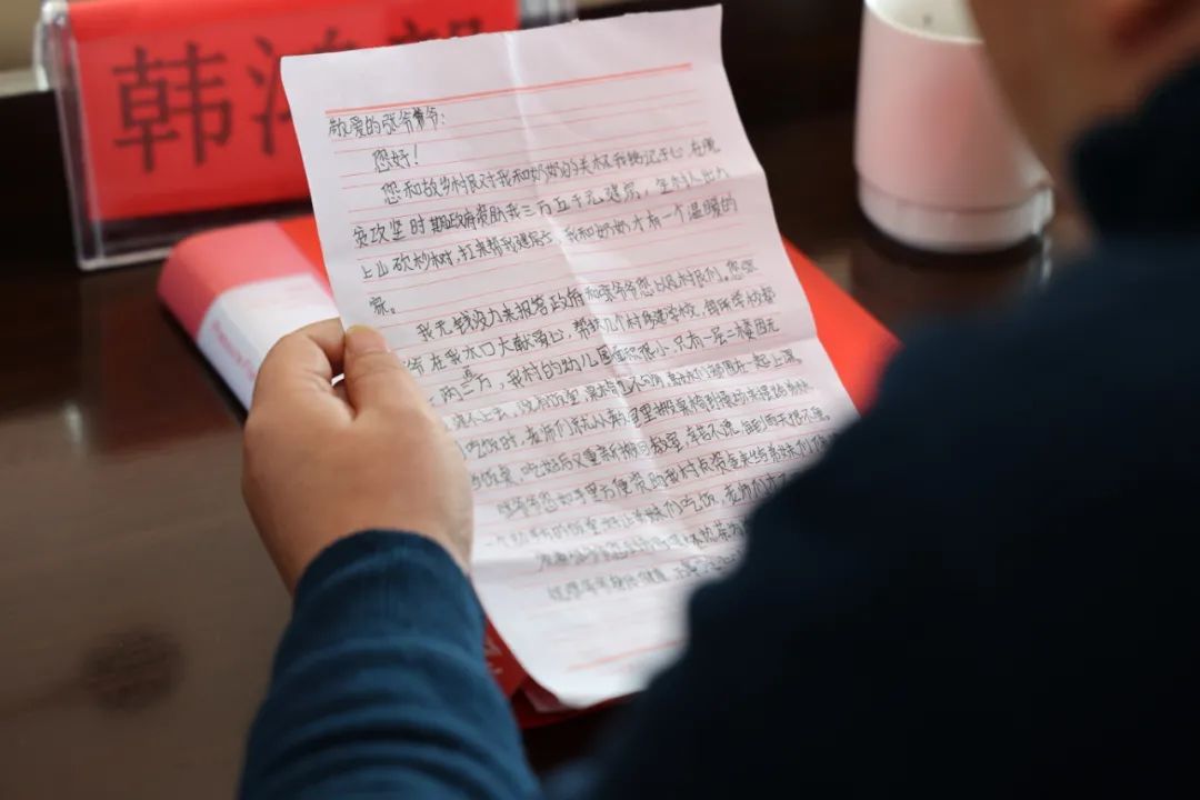 在捐贈(zèng)現(xiàn)場(chǎng),一位82歲的侗族殘疾老奶奶帶來(lái)了相依為命的孫子寫(xiě)的一封感謝信,黎平縣政協(xié)副主席韓鴻毅親自朗讀,為大家分享這個(gè)小學(xué)生的感謝信,童言童語(yǔ)情真意切,感人至深。