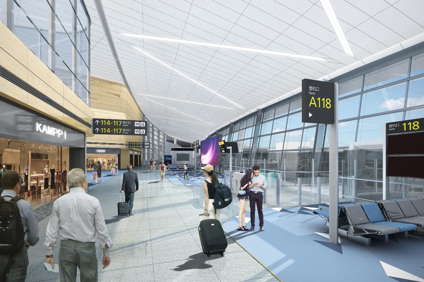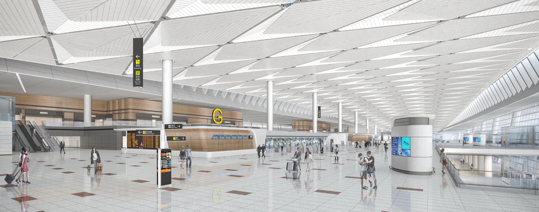 博大承建范圍涵蓋T2航站樓L2層到達迎賓廳、行李大廳、APM站臺、遠機位到達及旅客區域;L1層國內遠機位出發的精裝修工程及部分安裝工程施工等。