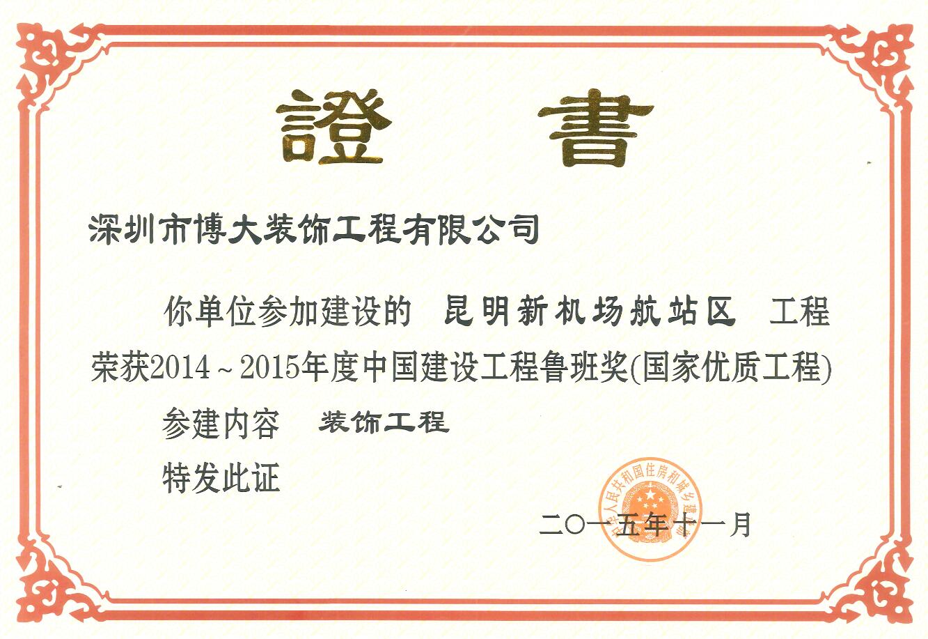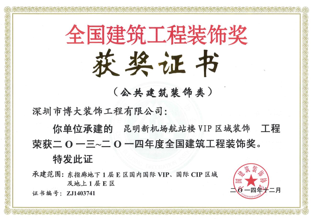 With the spirit of craftsmanship, Boda has made great achievements in the quality of a great ry. It has won the Luban Award and the China Architectural Decoration Engineering Award, the highest award of China's architectural decoration. It has been awarded the honorary title of "advanced collective Award" by Yunnan provincial Party committee and provincial government.