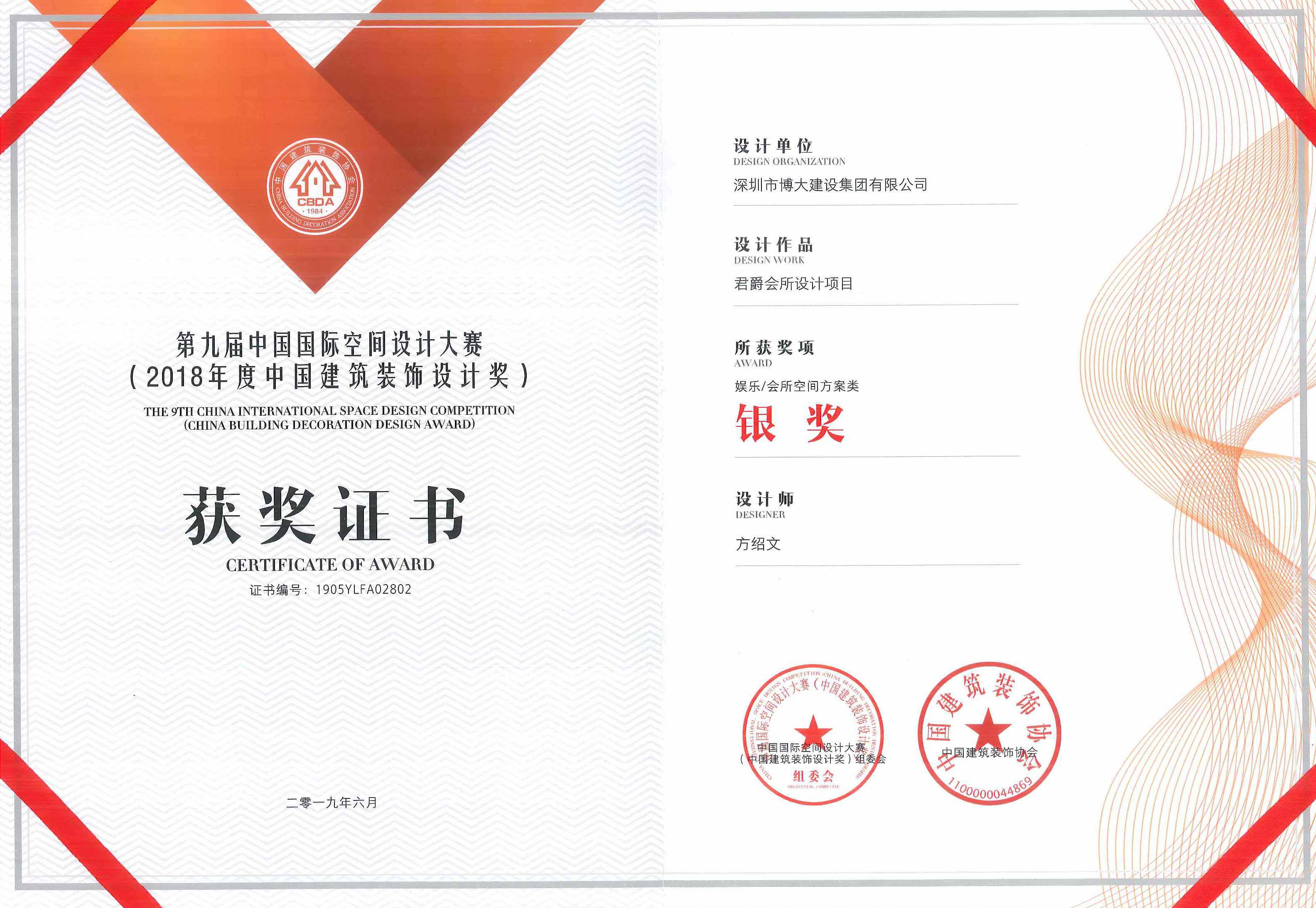 2021年度中國建筑裝飾行業百強裝飾類第二名