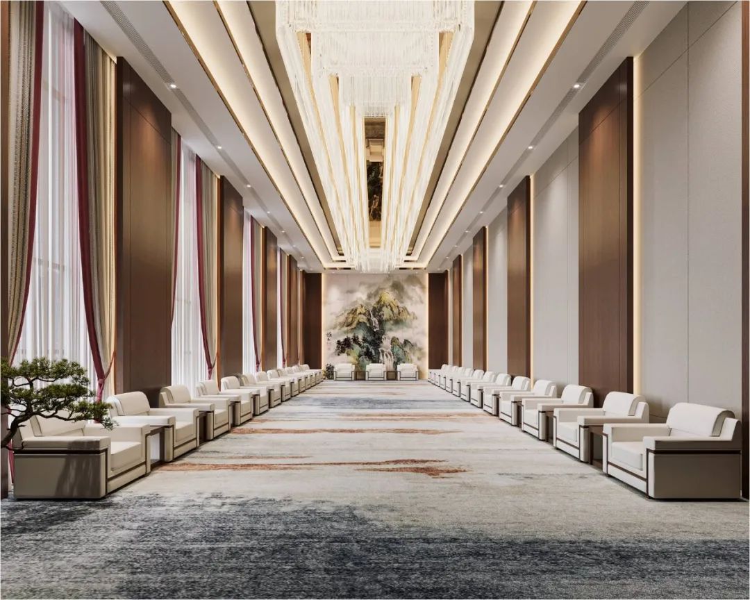 該辦公樓是集辦公,信息化,員工配套,培訓會議,企業展廳為一體的綜合性辦公樓,包含2棟建筑,總面積約4.8萬㎡。其中:1號樓地上建筑面積1.8萬㎡,2號樓地上建筑面積2.8萬㎡,博物館建筑面積2000㎡。博大的施工范圍涵蓋一層接待大堂;二三層信息化機房與系統運維;四五層職工餐廳;六至十二層科技辦公樓層;十三至十四層為企業特色辦公樓層;十五層培訓會議樓層;十六層文化活動中心,局部區域挑空作為羽毛球場地;十七層信合史館等在內的全部施工區域。