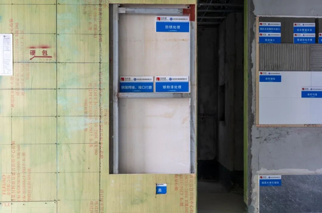 項(xiàng)目部除嚴(yán)格管控材料質(zhì)量外,也嚴(yán)格把控過程施工質(zhì)量,從基層彈線、龍骨排版、線管施工、艾特板安裝、夾板施工、防水施工等基層施工,每一道工序都嚴(yán)格按照標(biāo)準(zhǔn)、技術(shù)要求、工法樣板進(jìn)行施工。