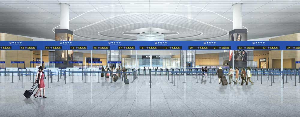 博大承建范圍涵蓋T2航站樓L2層到達迎賓廳、行李大廳、APM站臺、遠機位到達及旅客區域;L1層國內遠機位出發的精裝修工程及部分安裝工程施工等。