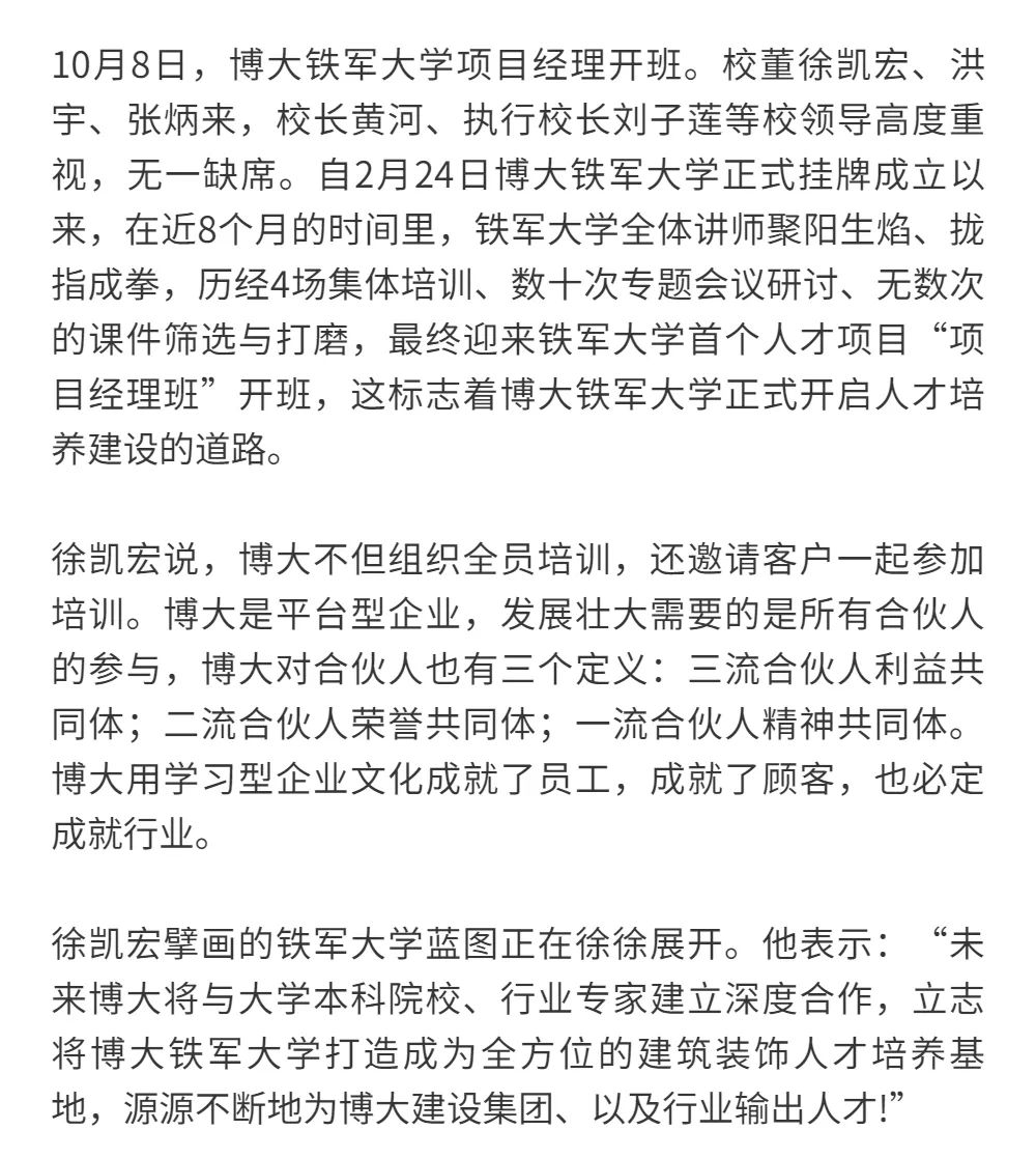 博大以雷霆之勢迅速崛起,吸引了行業(yè)的高度關(guān)注,行業(yè)權(quán)威媒體《中華建筑報》數(shù)次深入博大一線調(diào)研走訪,并對創(chuàng)始人徐凱宏先生進行了坦誠的訪談,以探討和總結(jié)博大發(fā)展的秘籍,并寫就了《進擊的博大:從高速到高質(zhì)量的創(chuàng)新逆襲》和《對話徐凱宏 | 博大正沿著高質(zhì)量發(fā)展道路堅定前行》兩篇文章。