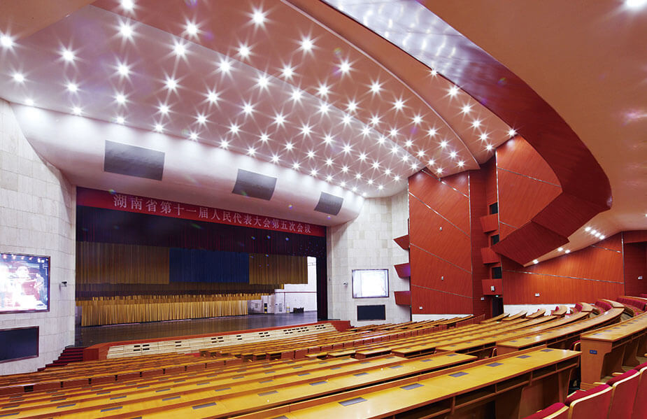 湖南省人民會(huì)堂是湖南省召開(kāi)兩會(huì)和重要會(huì)議及演出的會(huì)堂,位于長(zhǎng)沙市天心區(qū)湖南省人民政府新機(jī)關(guān)大院內(nèi)西北面,總用地面積66333㎡,總建筑面積27000㎡,觀眾廳設(shè)座位1840席,主臺(tái)設(shè)座位200席。